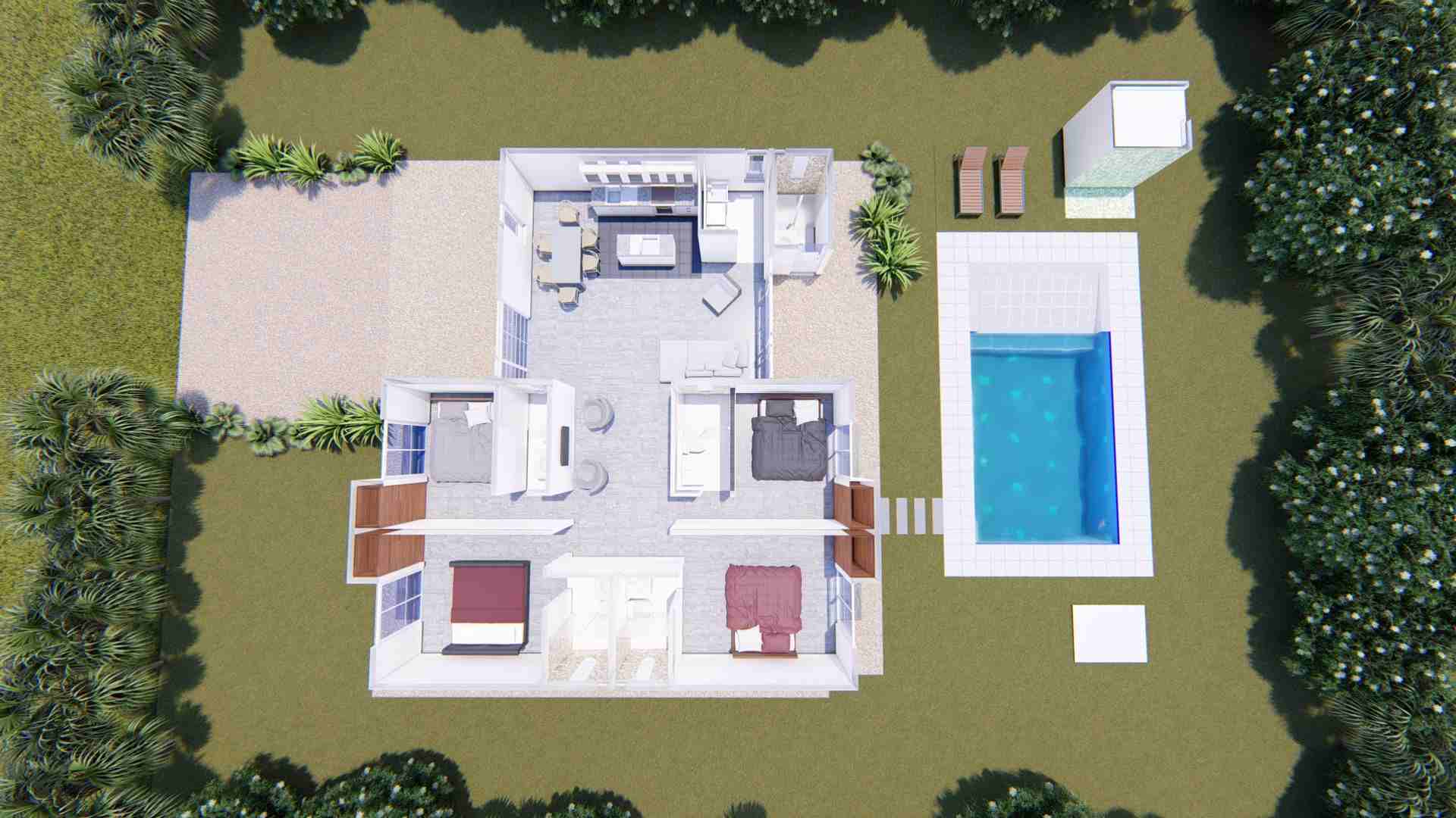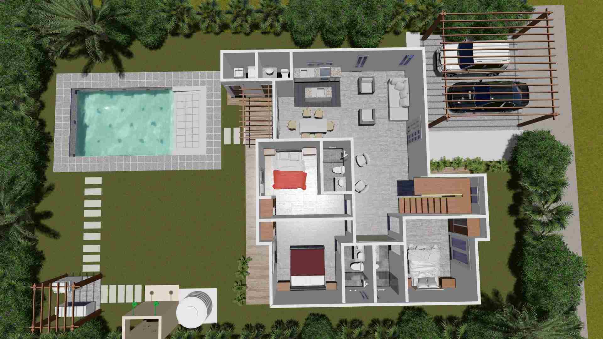 - Las piscinas privadas cuentan con Playa Falsa y jacuzzi (Adicional opcional) con blower para inyección de aire, siendo este un espacio ideal de estancia para los niños y adultos mayores.